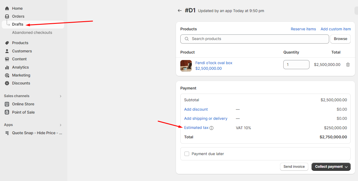 But this tax will not show up in draft order created from quote.&#x20;