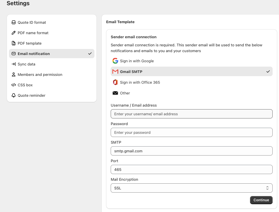 If you're using Gmail, select Sign in with Google (or Gmail SMTP while it's not recommended).