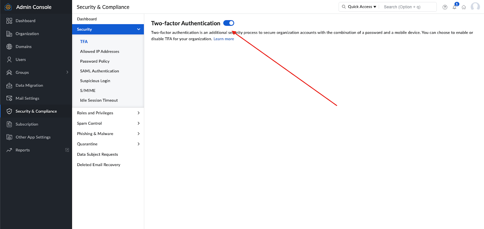 Scroll down to the Two-Step Verification setting and tick the checkbox to Allow users to turn on 2-step verification. This will enable the ability of the account user to utilize two-step authentication if they choose. If you want to make it mandatory for your users to use two-step verification when signing in, please choose Enable enforcement