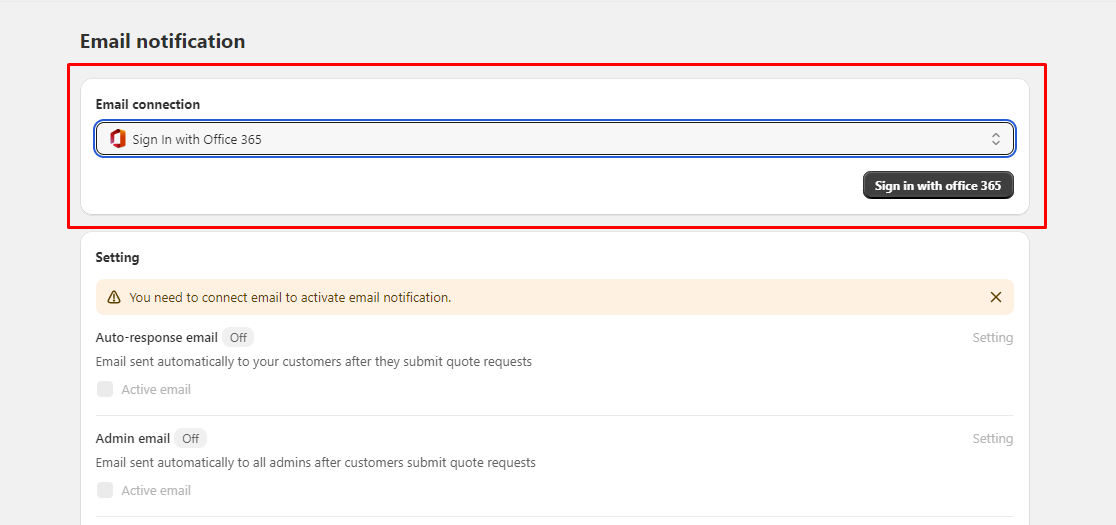 The Email Notification feature allows you to connect your email to receive notifications for new requests and send offer emails to your customers seamlessly.