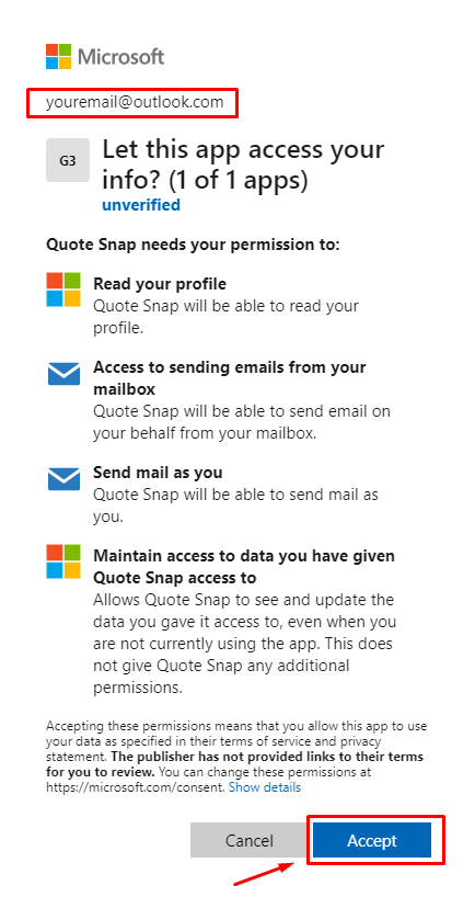 Then Quote Snap will send you a test email & your email will be connected successfully