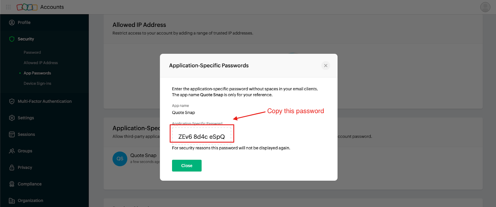 Use information in Zoho email to set up SMTP. If you are not using Two-factor authentication, Password here is your email password.