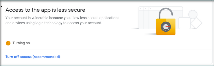 If you do not see "Turn on "Access to the app is less secure", or it show like below: