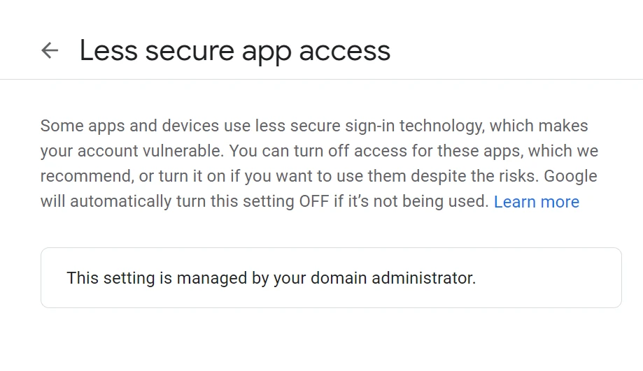Allow users to manage their access to less secure apps Users can turn on or turn off access to less secure apps.