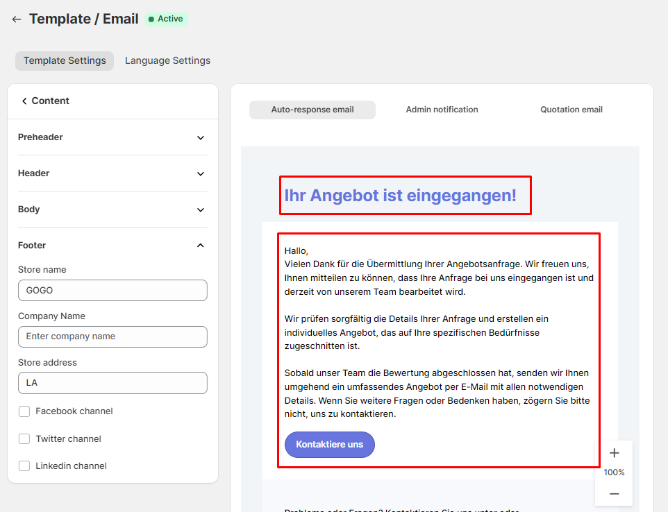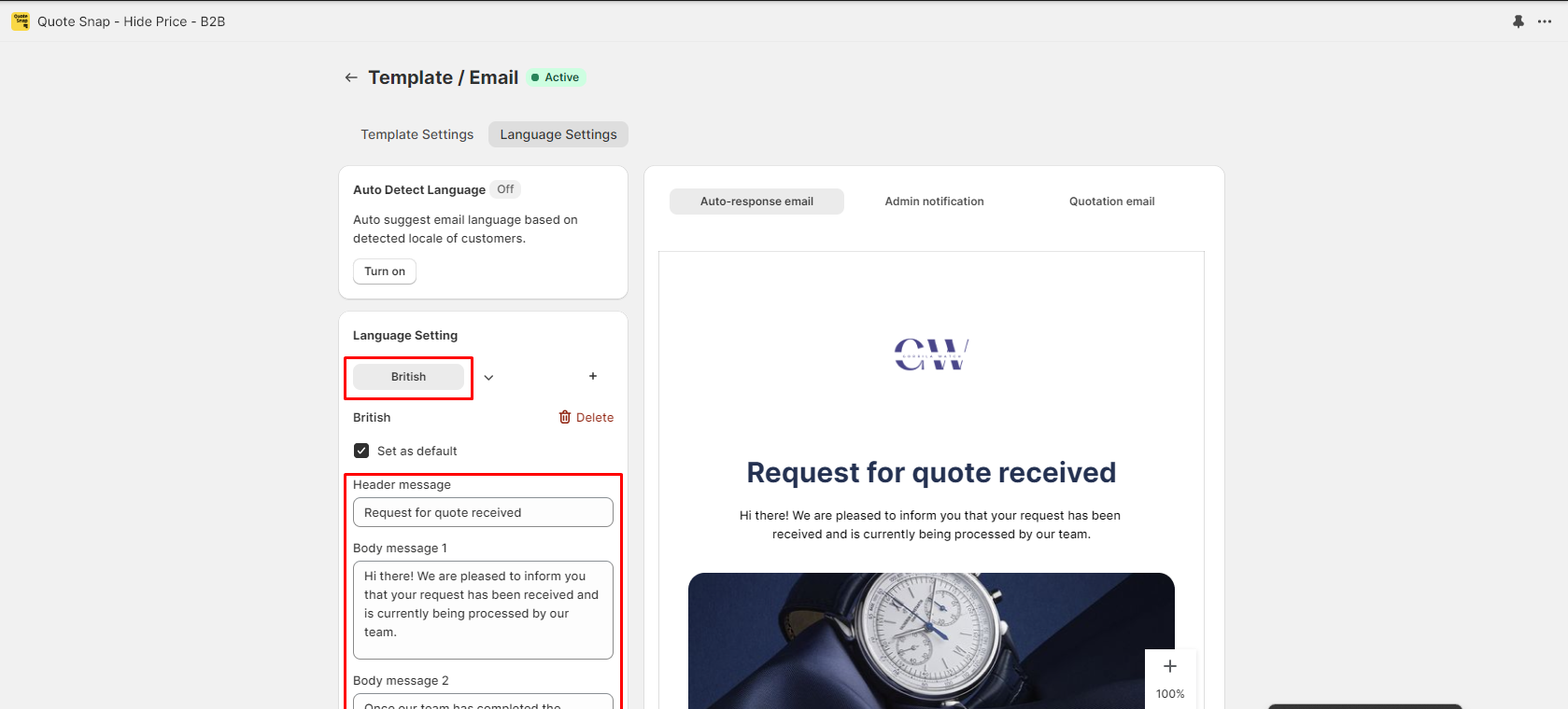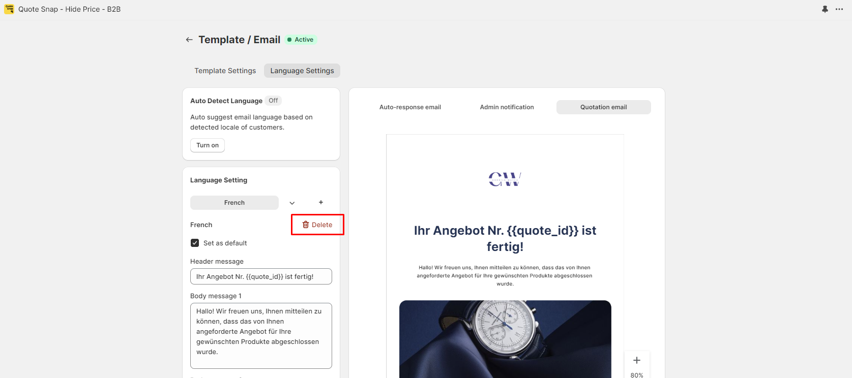 For example, if a German customer submits a quote request, and you already have a German version of the auto-response email, the email will be sent in German.