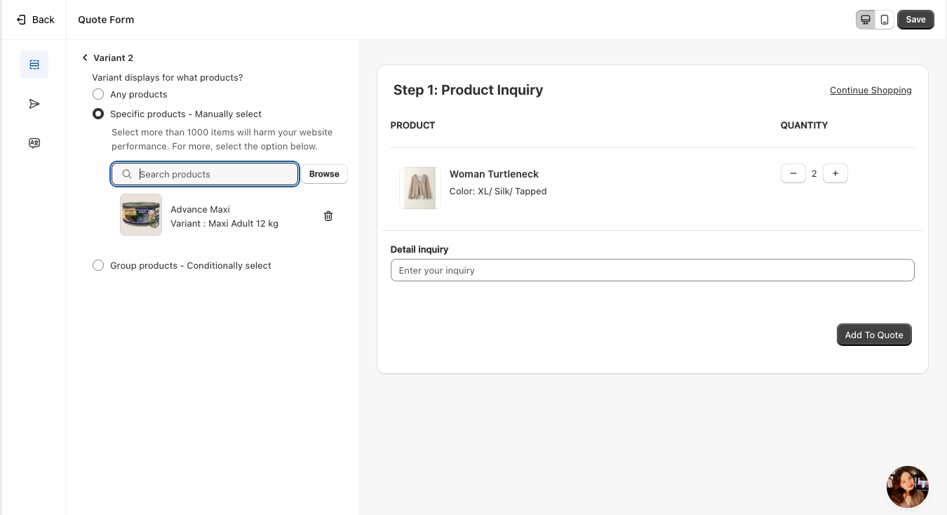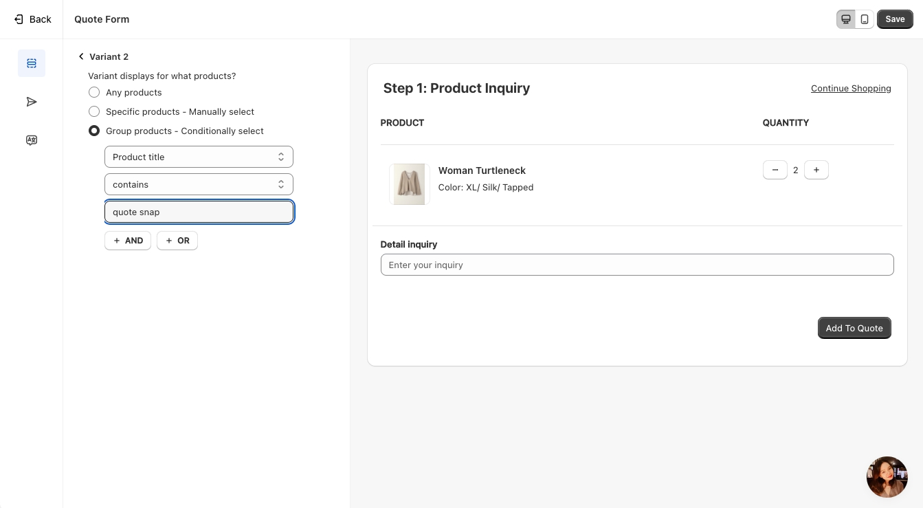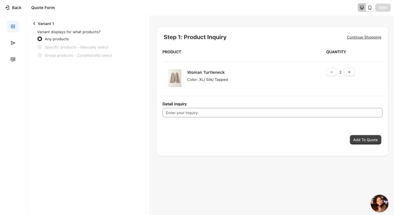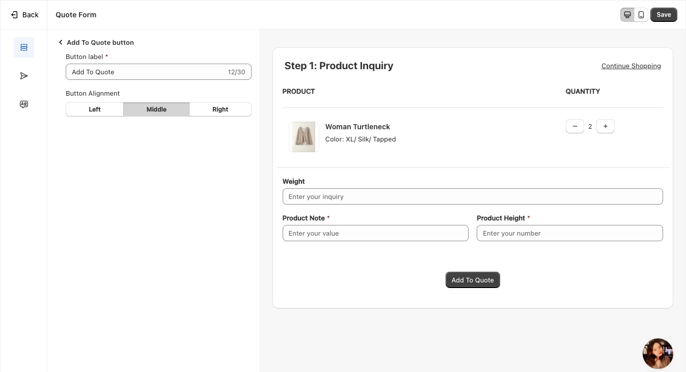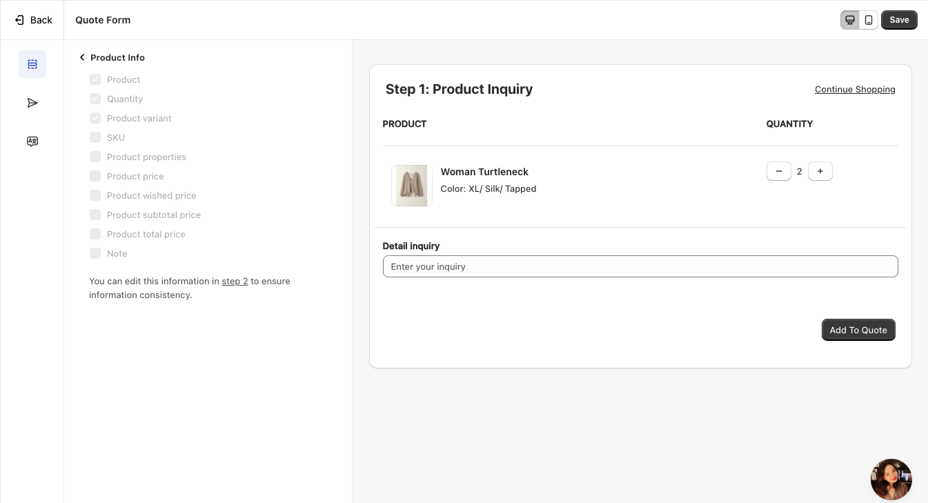 Sync Data to Shopify – Transfer the submitted quote data to Shopify for seamless integration.
