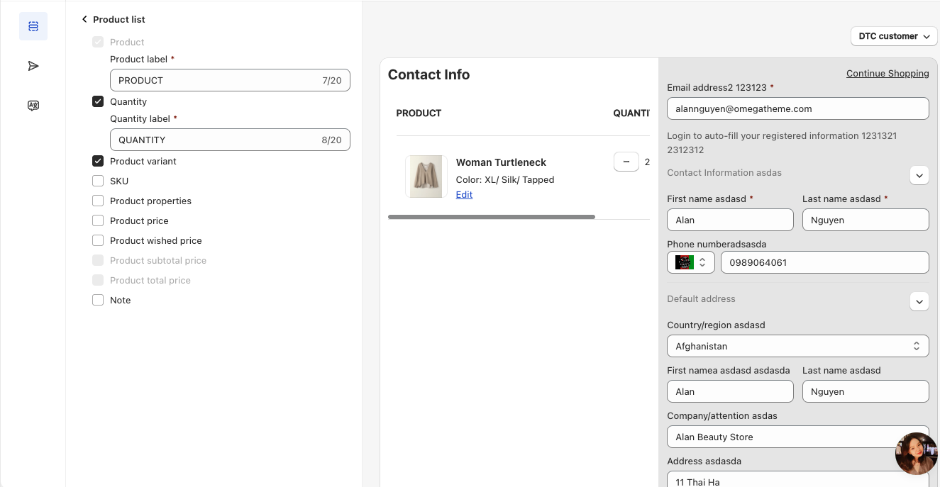 Product List Setting: This feature allows you to configure the display and labels for each item in the product table, such as product name, quantity, SKU, variants, price, total, subtotal, and other values. You can customize how each field appears, providing clarity and ensuring the table aligns with your specific layout and labeling preferences.