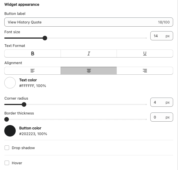 Customize the visual style of the Quote History Widget to align with your store’s branding.