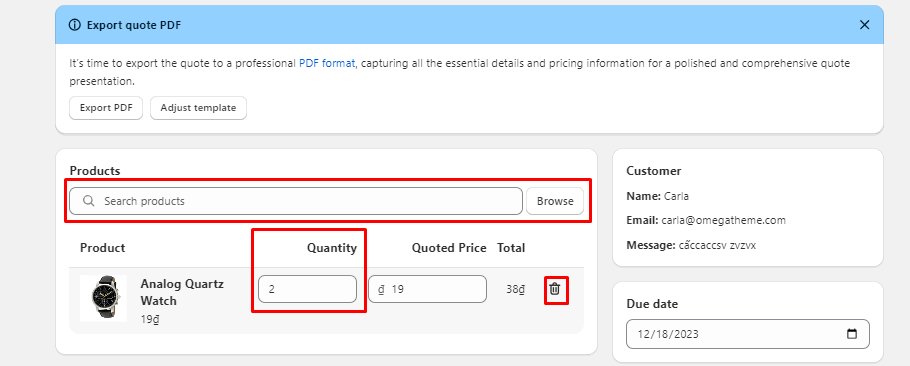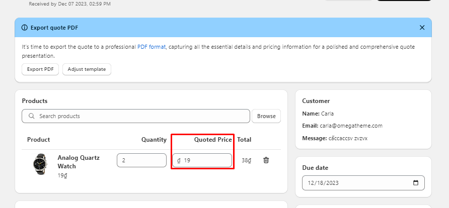 Set an expiration date for the quote. This ensures that quotes are only valid for a specified period, keeping requests up-to-date.