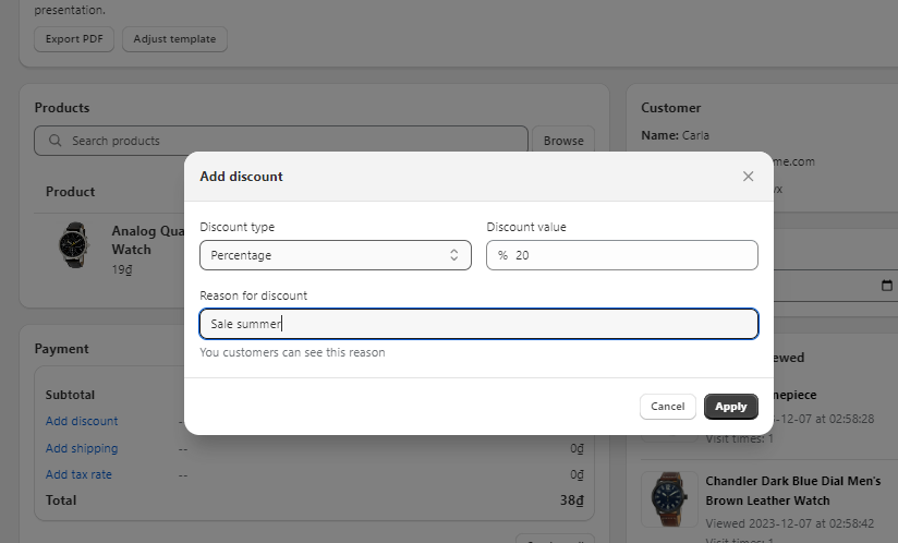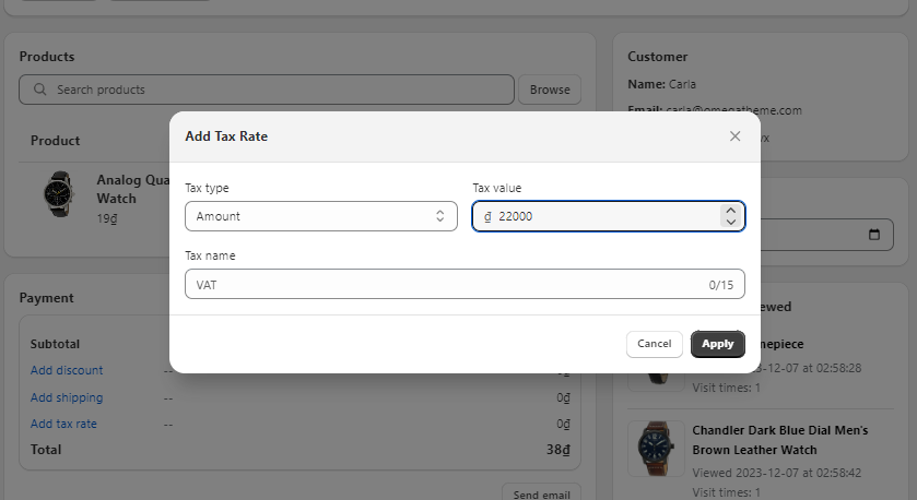 * Update your offer price by change price of each product, add tax, discount and shipping rate.