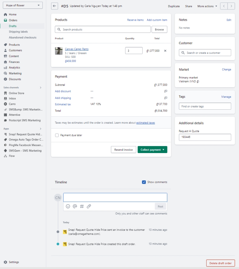 . This is draft order created from Quote Snap in Shopify Admin. All information is auto-synced.