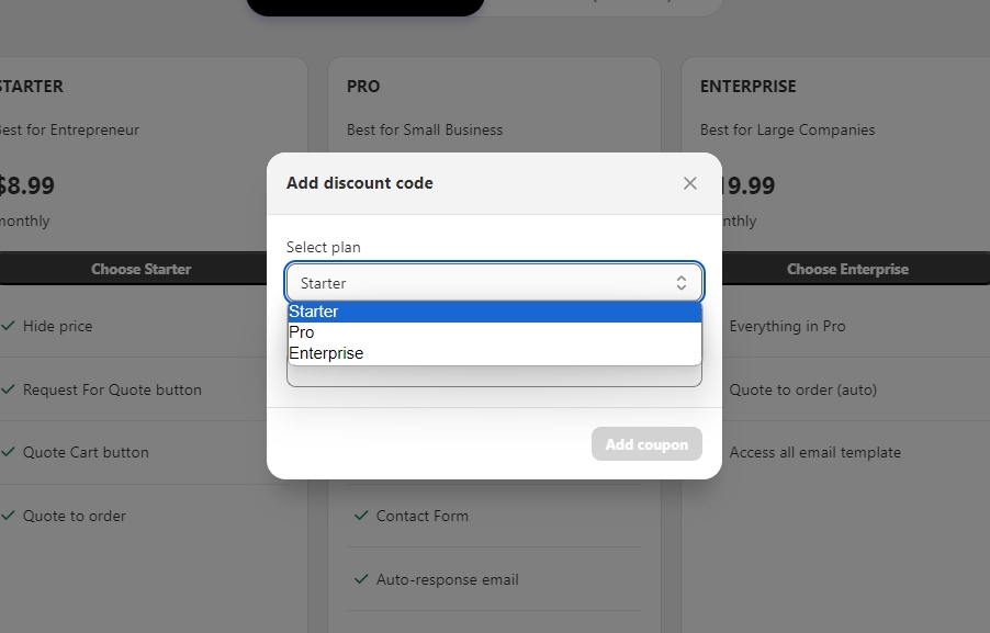 Choose your plan which is valid for the discount code
